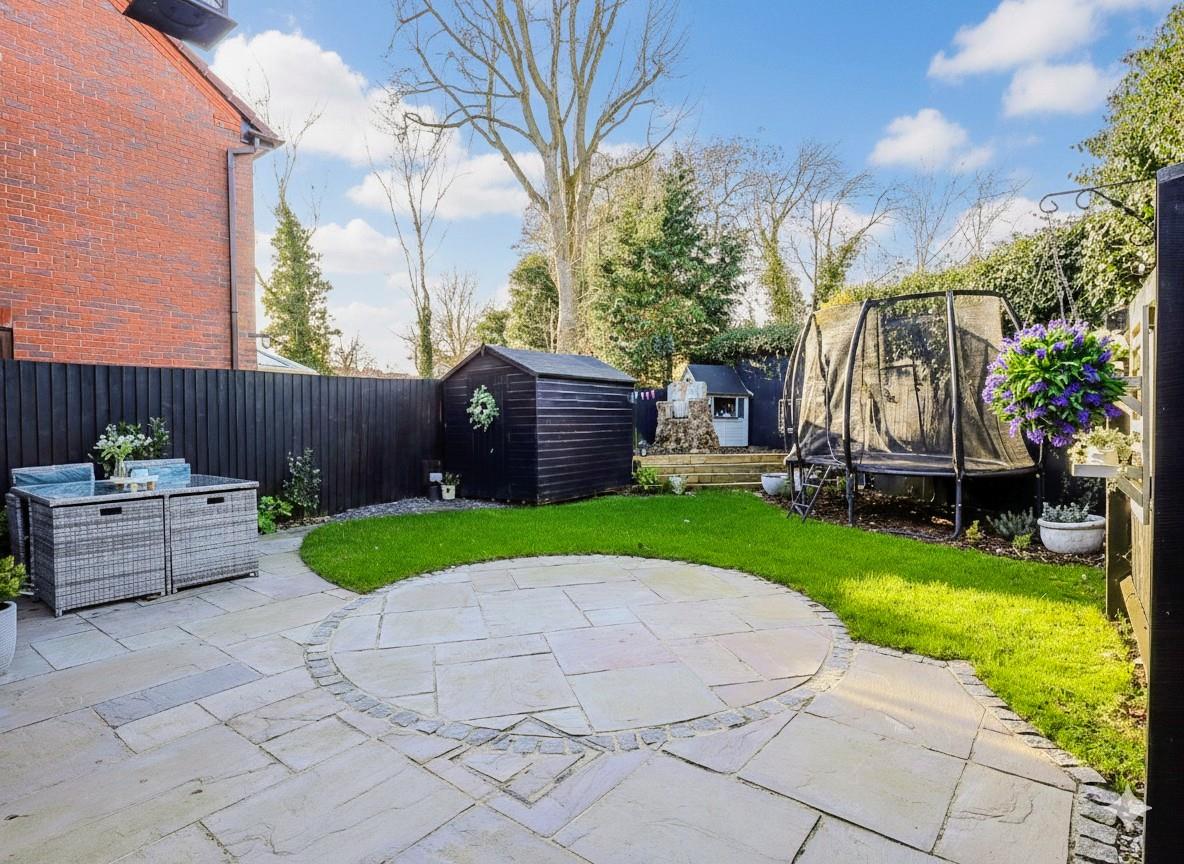 Outside the property benefits from a private and enclosed garden to the rear which has a large patio overlooking the lawn garden with a raised area at the very far end of this space. To the front, the house is set back from the road and there is a driveway, 7kW EV charger and further lawned garden.