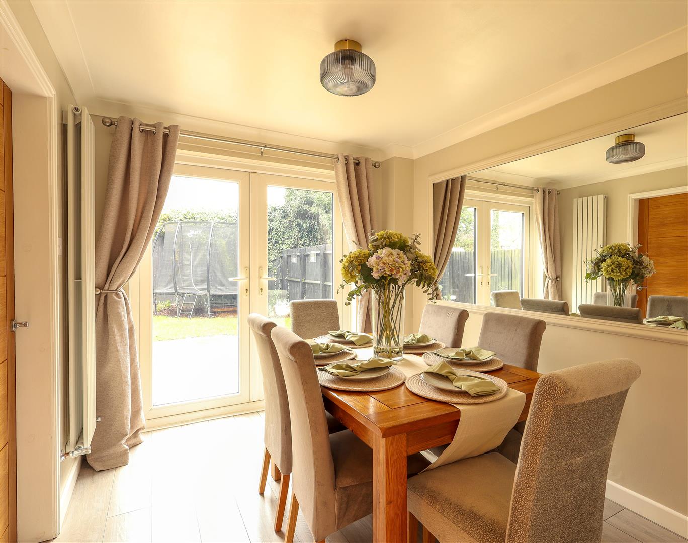 With double glazed French doors leading to the rear elevation, staircase leading to the first floor, ample space for dining table, vertical radiator and useful understairs storage cupboard.