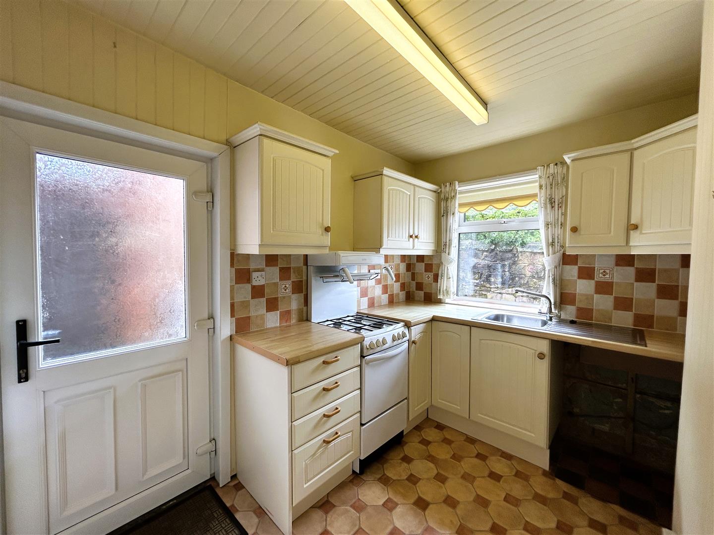 Appointed with a range of cream shaker style base cupboards, drawers and eye level units with wood block effect work surface over incorporating a stainless steel sink drainer with mixer tap and splash back tiling. There is a gas cooker, plumbing for a washing machine, space for a fridge freezer. UPVC double glazed window to the rear and a half glazed entrance door allows access to the side. There is access to :