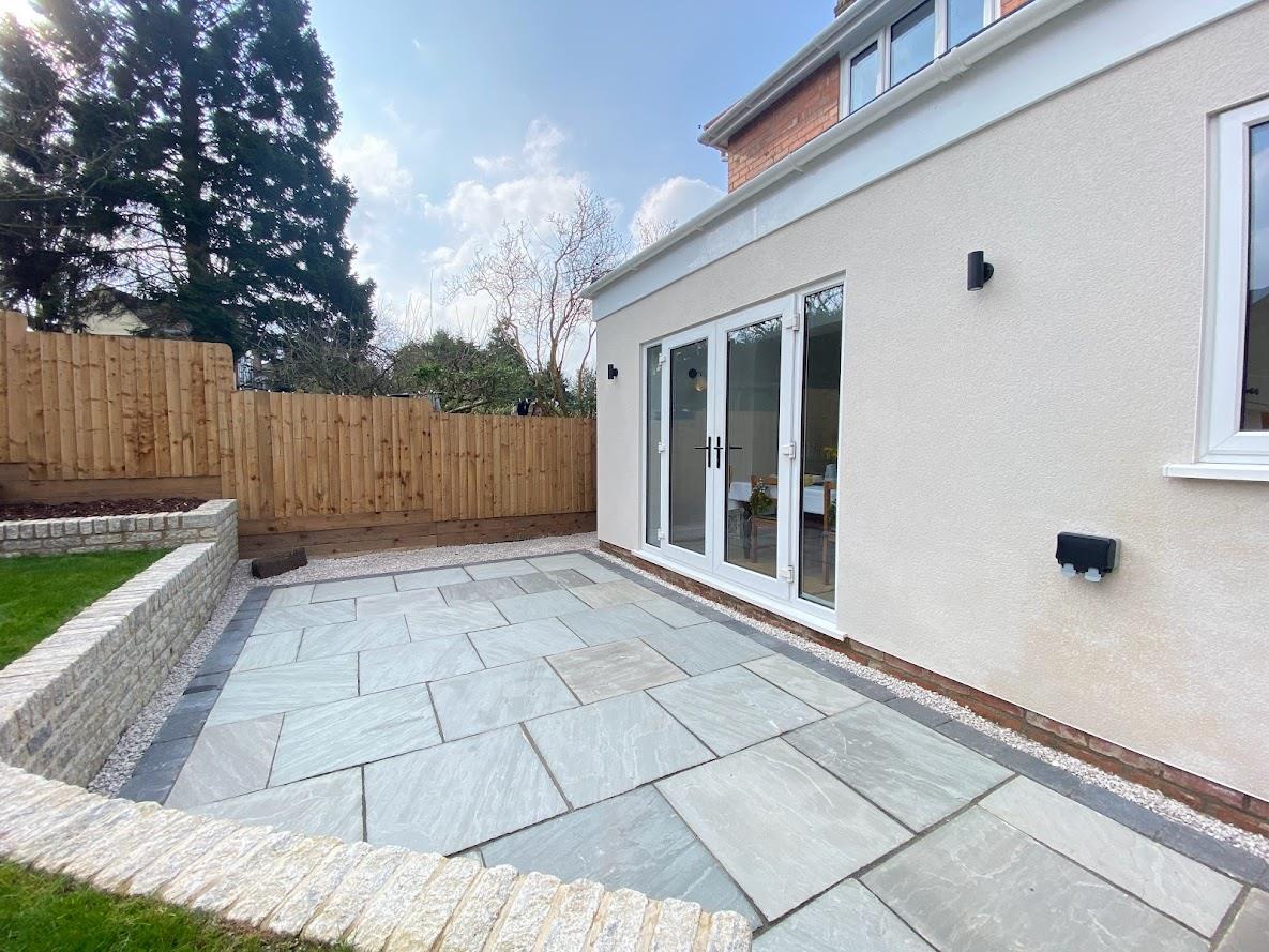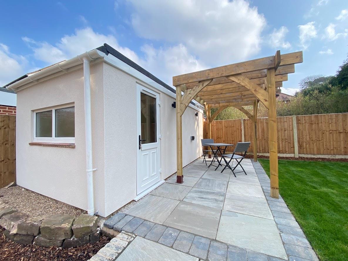 There is also external lighting, paved side pathways, gate and brick store shed.